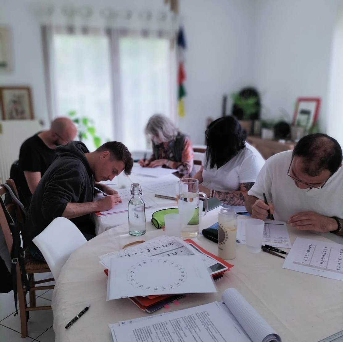 Tout mon travail en amont est de vous faciliter cet apprentissage.Mon objectif premier dans ces ateliers est que vous ressentiez l'énergie, la vibration de chaque lettre à travers votre corps, vos cellules, pour déprogrammer toutes les fameuses trames généalogiques